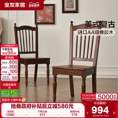 美式复古风实木餐椅新款客厅家用靠背椅子书房书椅办公椅