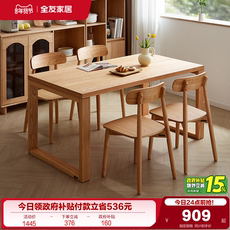 北欧餐桌椅子组合客厅家用实木框架长方形大板桌办公桌