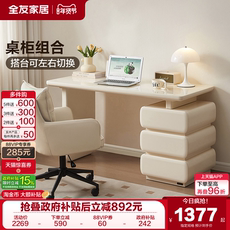 现代简约奶油风书桌卧室书房储物一体办公桌子椅子