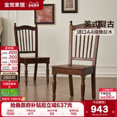 美式复古风实木餐椅新款客厅家用靠背椅子书房书椅办公椅