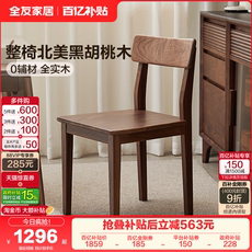 黑胡桃木实木餐椅客厅家用餐桌靠背椅子书房阅读办公椅