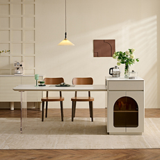 现代简约多功能玻璃岛台餐桌一体奶油风客厅家用饭桌椅