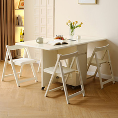 奶油风多功能餐桌椅客厅新款可移动折叠多功能长方形饭桌