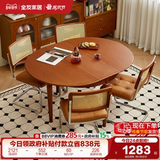 中古风可伸缩餐桌小户型客厅家用多功能可变圆桌椅子组合