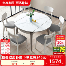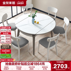 现代简约多功能伸缩岩板餐桌可变圆桌客厅家用饭桌椅组合