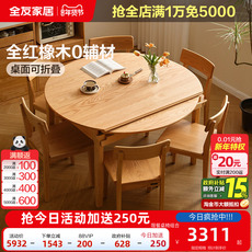 北欧风橡木实木餐桌椅组合客厅家用多功能可伸缩圆形饭桌