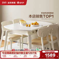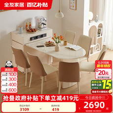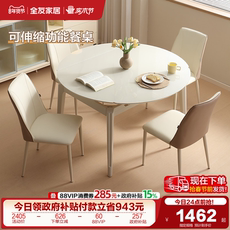 奶油风岩板餐桌客厅家用多功能可伸缩变圆吃饭桌椅子组合