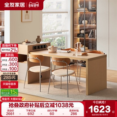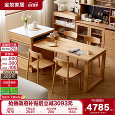 原木奶油风岩板餐桌椅组合客厅家用实木折叠多功能餐桌