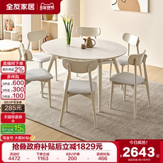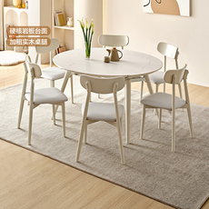 奶油风可伸缩多功能实木框架吃饭圆桌客厅岩板餐桌椅组合