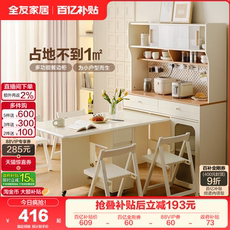 奶油风多功能餐边柜小户型可折叠餐桌椅组合