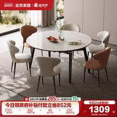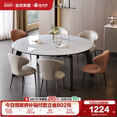 意式轻奢岩板餐桌椅组合家用客厅可变圆伸缩多功能饭桌