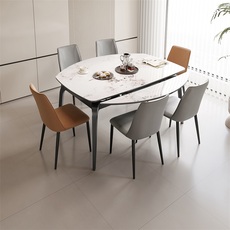 意式极简微晶石餐桌客厅家用多功能折叠吃饭桌子椅子组合