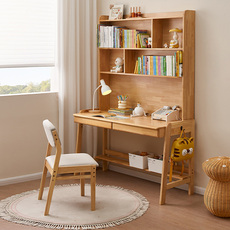 现代简约实木多功能升降儿童书桌书柜一体学习桌写字桌椅