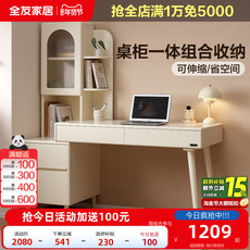 奶油风书桌柜一体卧室阅读学习桌椅书房写字桌