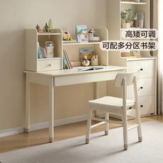 奶油风儿童学习桌椅组合家用写字书桌实木芯桌板电脑桌