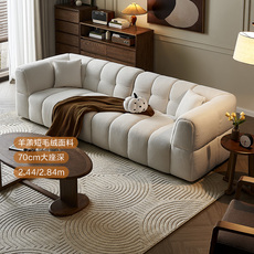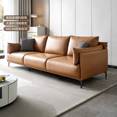 意式极简皮感科技布沙发 客厅一字造型宽座深沙发