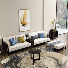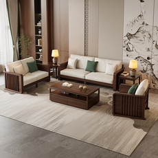 客厅沙发小户型新中式实木框架胡桃木色沙发软包可拆洗