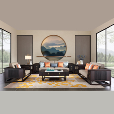 家具家私正品 挪威森林 新中式 61016S 实木布艺沙发组合