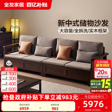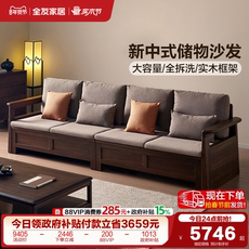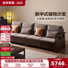 新中式可拆洗实木框架沙发客厅2025新款胡桃色储物家具