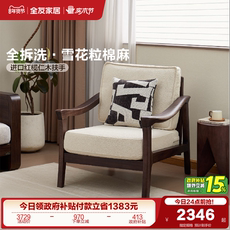 新中式实木休闲椅新款客厅家用单人靠背椅可拆洗沙发椅