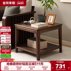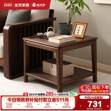 新中式客厅沙发边几实木框架方几卧室阳台家用胡桃色小桌
