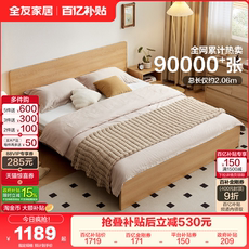 原木风卧室板式床家具组合奶油风1.8m双人床乳胶床垫套装