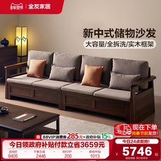 2025新款新中式可拆洗布艺实木沙发客厅直排储物棉麻沙发