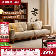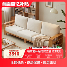 北欧原木风沙发客厅家具直排三人位红橡木实木布艺沙发